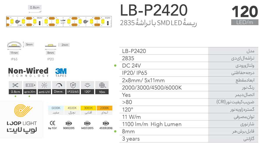 • تراکم ۱۲۰ LED در هر متر برای روشنایی یکنواخت.