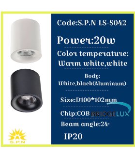 چراغ استوانه ای COB روکار 30وات درجه نور:24 درجه ابعاد:11.5cm*11cm