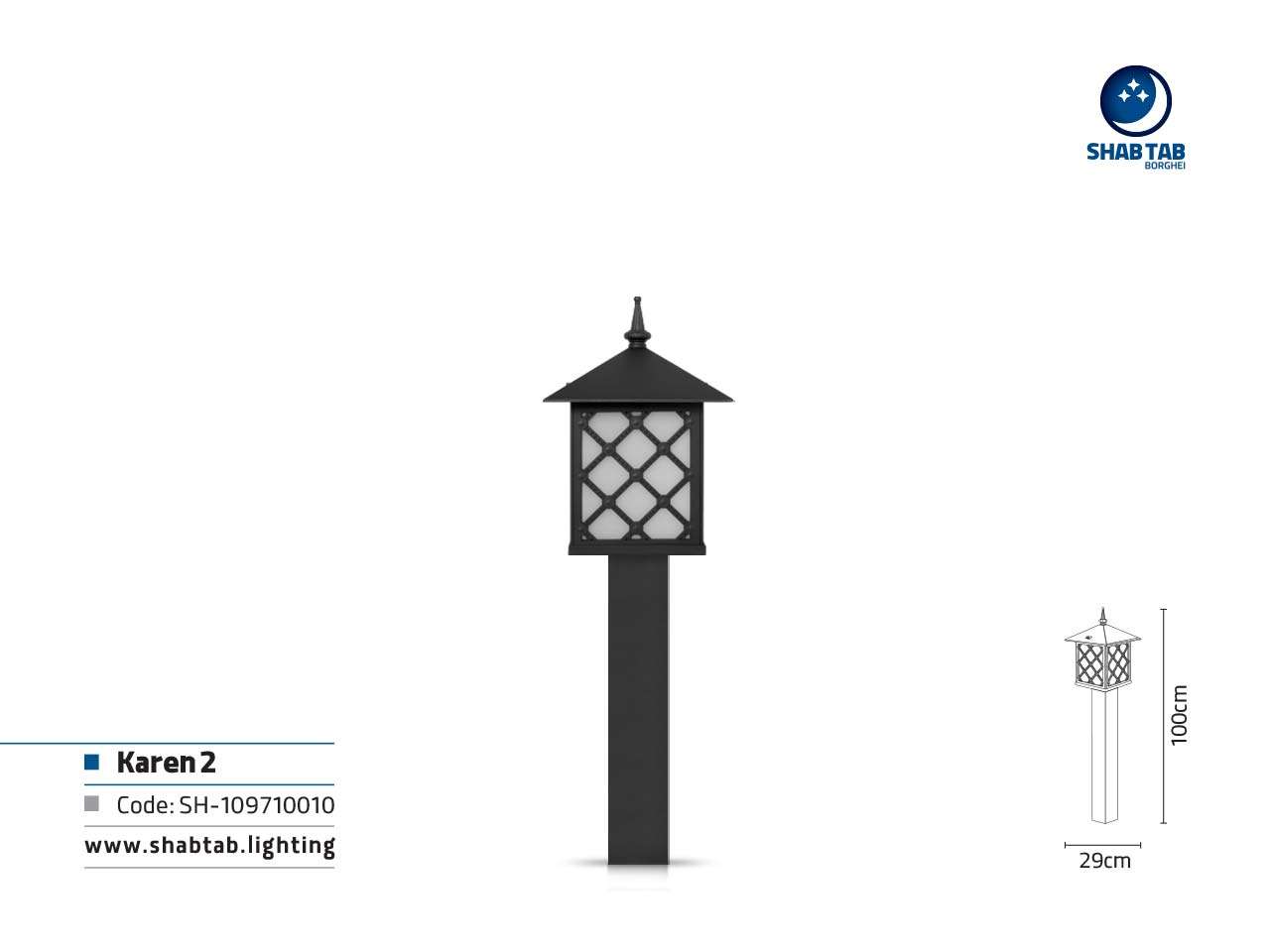 چراغ چمنی شب تاب برقعی مدل کارن ۲ یکی از مدل‌های جذاب و شیک چراغ‌های محوطه‌‌ای محسوب می‌شود. چراغ چمنی کارن ۲ در سه سایز و ارتفاع متفاوت ارائه شده تا نیاز شما را به خوبی برآورده نماید. کوچک‌ترین اندازه‌ی این چراغ چمنی زیبا حدود ۵۵ سانتی‌متر، اندازه‌ی متوسط آن ۱۰۰ سانتی‌متر و بزرگ‌ترین سایز آن ۱۱۵ سانتی‌متر بلندی دارد. این چراغ چمنی در دو رنگ سفید و مشکی عرضه شده و می‌تواند در کنار دیگر چراغ‌ها و المان‌های باغ و ویلا، جلوه‌ای زیبا به محوطه ببخشد. بدنه‌ی چراغ چمنی کارن ۲ از جنس آلومینیوم دایکست بوده و با رنگ پودری الکترواستاتیک رنگ شده است. بدین ترتیب در عین سبکی در مقابل عوامل آب و هوایی مثل باران و رطوبت و زنگ‌زدگی کاملا مقاوم است. چراغ چمنی کارن ۲ یک انتخاب عالی برای زیبا‌ترکردن حیاط منزل شماست.